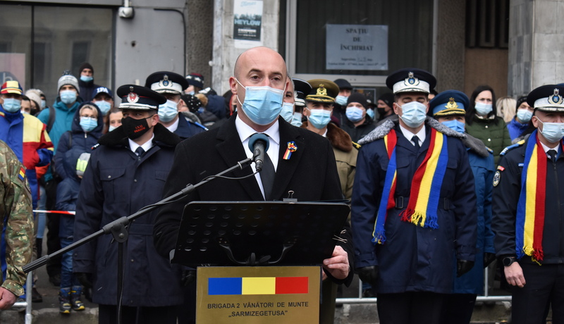Conform protocolului, ceremonia a început cu trecerea în revistă a trupelor de către prefectul județului, Cătălin Văsii.