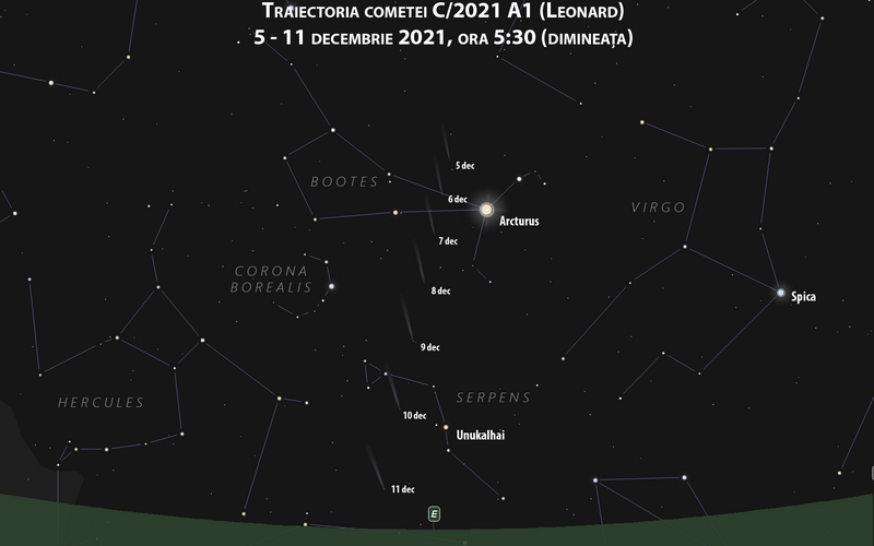 „Este vorba de C/2021 A1 (Leonard), descoperită în ianuarie 2021. Vine de departe, de pe la 550 de miliarde de kilometri și pare să nu fie prima ei vizită pe lângă Soare, de care nu se va apropia foarte mult. Pe 3 ianuarie 2022 se va afla la 92 de milioane de km de el, ceea ce este mult pentru o cometă. Ce-i drept, după ce va trece pe lângă Soare nu se va mai întoarce niciodată, orbita fiind „deschisă””, a precizat astronomul.