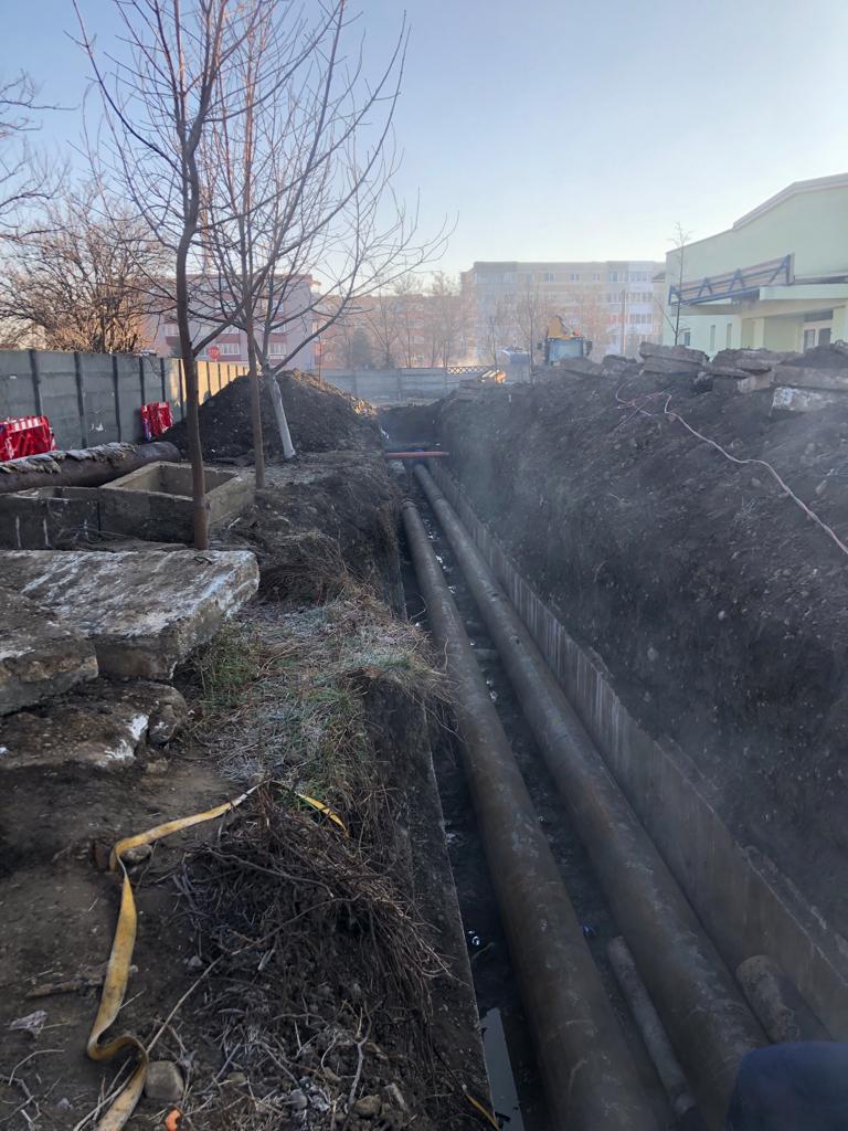 Vă reamintim că luni a fost identificată o avarie pe rețeaua de transport, Dn 500mm, atât pe conducta de tur, cât și pe cea de retur. Aceasta este localizată în curtea Școlii Gimnaziale nr. 11. Pe măsură ce s-a decopertat s-a descoperit că avaria era mult mai gravă decât se estimase inițial, astfel că, în final, a fost necesară înlocuirea a două tronsoane de câte 30 de metri pe cele două conducte, de tur și de retur. Această avarie a afectat aproximativ 600 de apartamente din cartierul Florilor.