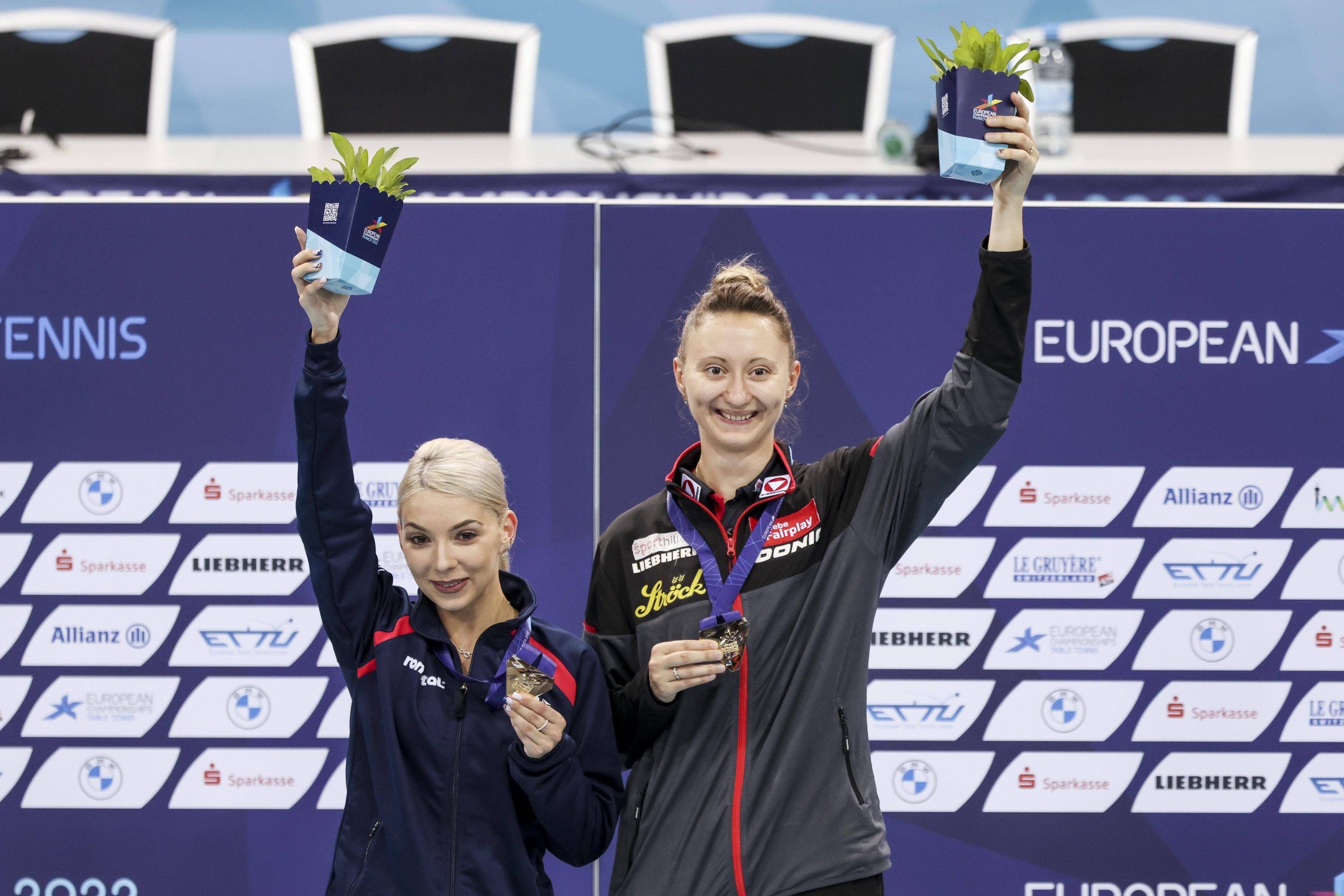 Echipa Bernadette Szocs/Sofia Polcanova (România/Austria) a câştigat, joi, proba de dublu feminin din cadrul Campionatului European individual de seniori la tenis de masa. Finala s- a disputat împotriva perechii Elizabeta Samara/Andreea Dragoman (România). Astfel, pe toate cele trei trepte ale podiumului la dublu feminin se află românce.