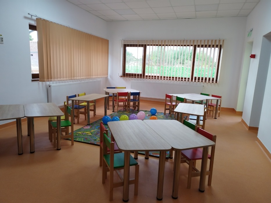 Clădirea are un spațiu multifuncțional, un vestiar, un cabinet medical, un izolator cu grup sanitar propriu, două grupuri sanitare pentru copii, un depozit, un oficiu, o terasă acoperită și una neacoperită. Constrycția ei, de la zero, a durat doi ani.