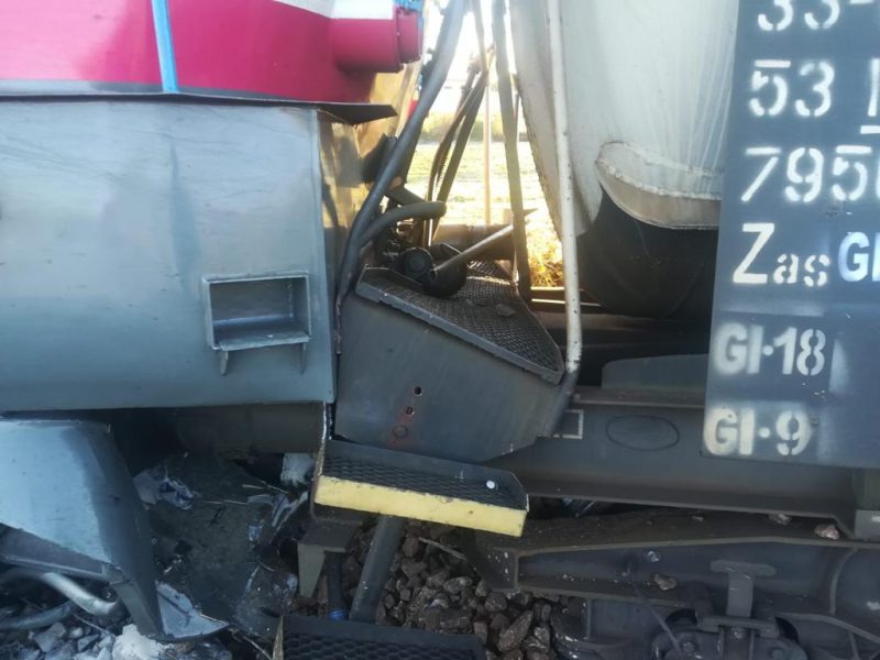 Garnitura, formată din vagoane cisternă, aparține operatorului privat Grup Feroviar Român.