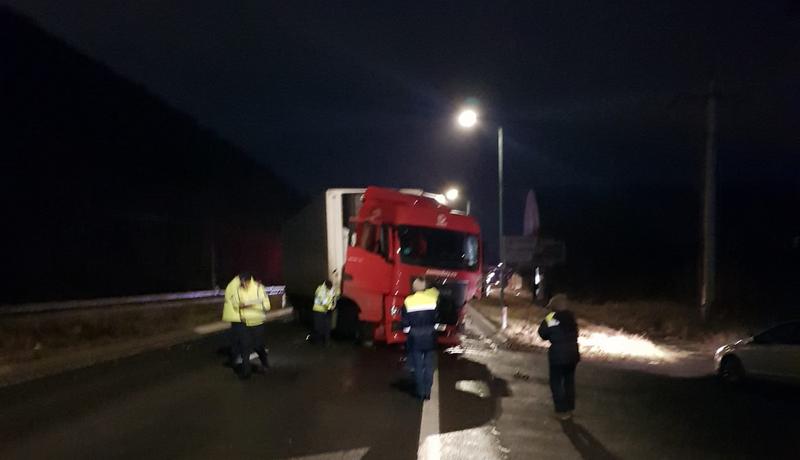 Conducătorul unui autoturism a pierdut controlul direcției de mers și a intrat în coliziune cu un autocamion. În urma impactului a rezultat rănirea șoferului autoturismului, care a fost preluat de un echipaj SMURD şi transportat la spital. Circulația rutieră este blocată pe ambele sensuri de mers, valorile de trafic fiind în creștere.