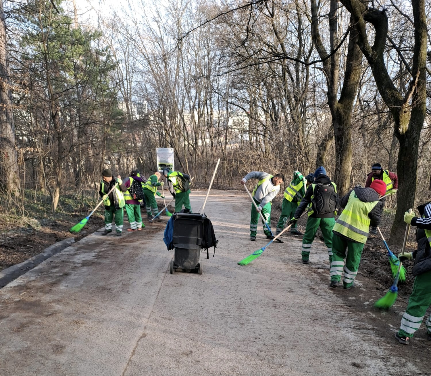 - Măturat trotuare și greblat zone verzi ce aparțin ariei de delegare a operatorului