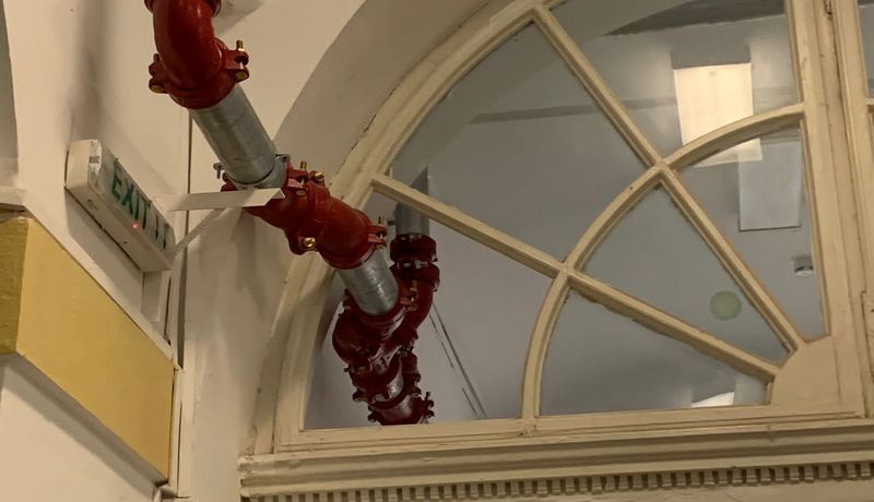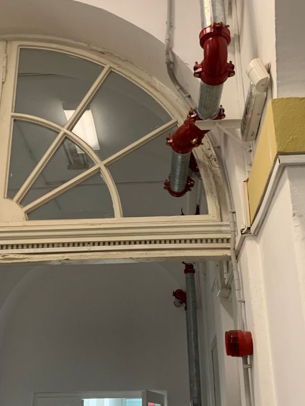Printre altele, pentru rețeaua de hidranți a școlii au fost montate conducte de apă, însă proiectanții și constructorii nu au făcut mari eforturi pentru ca țevile instalate pe coridoare să fie cât de cât mascate. Ba mai mult, în holuri, dacă „în calea conductelor” stătea un geam, acesta a fost spart.