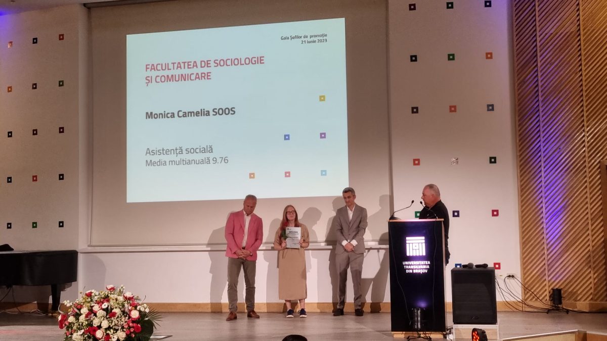 Printre cei premiaţi se află şi Monica Camelia Soos, absolventă a Facultăţii de Sociologie şi Comunicare, care în acest an a marcat şi o premieră în istoria FSC: este primul şef de promoţie al facultăţii, provenit de la programul de studii Asistenţă Socială. În 2022, şeful de promoţie al Facultăţii de Sociologie şi Comunicare, Ovidiu Imbuzan, a provenit de la programul de studii Comunicare şi Relaţii Publice.