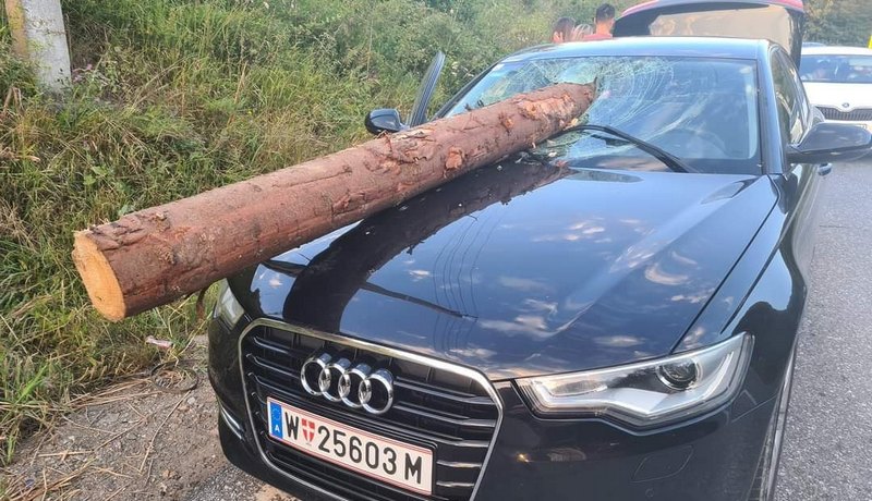 Pasagerii unui autoturism au fost la un milimetru de moarte luni, după ce un buștean a căzut de pe remorca unul camion aflat în fața lor și s-a înfipt în parbrizul mașinii mici. Practic, lemnul a trecut pe lângă tâmplele celor care ocupau locurile din față. Nu au fost răniți, însă șoferul autoturismului a suferit un atac de panică, fiind transportat la spital. Acest incident subliniază, din nou, necesitatea unor măsuri de siguranță îmbunătățite pentru vehiculele care transportă lemn pe drumurile publice.