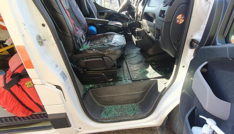 Echipajul ambulanței a intrat în vehicul și a închis ușile, iar în acel moment individul a lovit geamurile până le-a spart.