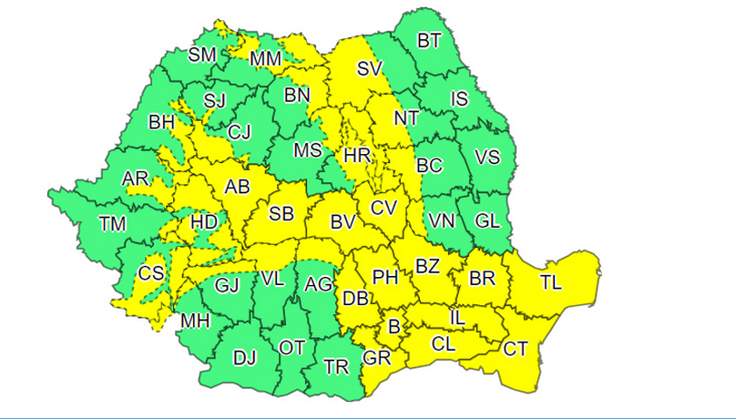 „Vântul va avea intensificări în Dobrogea, în cea mai mare parte a Munteniei și în sudul Transilvaniei, cu viteze de 55…65 km/h și izolat peste 70 km/h. În zona Carpaților Orientali va ninge moderat cantitativ (10…15 l/mp) și va continua să se depună strat de zăpadă. La munte vor fi rafale de 60…80 km, iar la altitudini mai mari de 1700 m, peste 90…110 km/h și vor fi perioade cu viscol și vizibilitate scăzută”, au anunțat meteorologii.