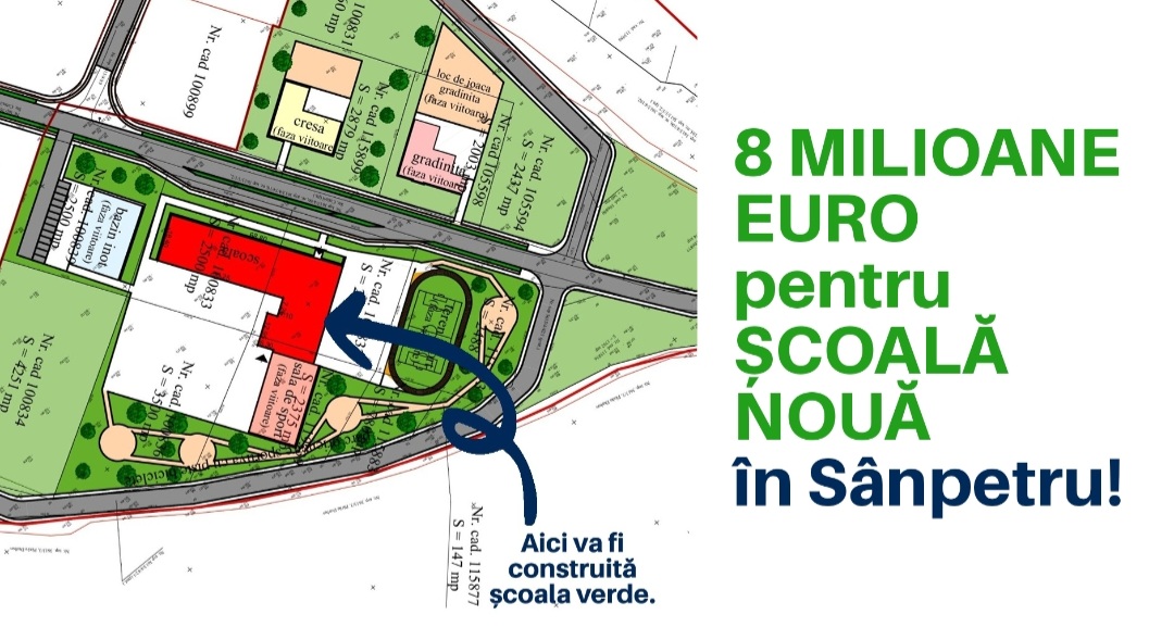 Marian Arhire, primarul USR al comunei Sânpetru, a obținut finanțarea pentru o școală nouă în valoare de 8 milioane de euro. Este vorba de finanțare europeană nerambursabilă prin PNRR, pentru o școală cu 32 de săli și laboratoare, pentru aproximativ 850 de elevi.