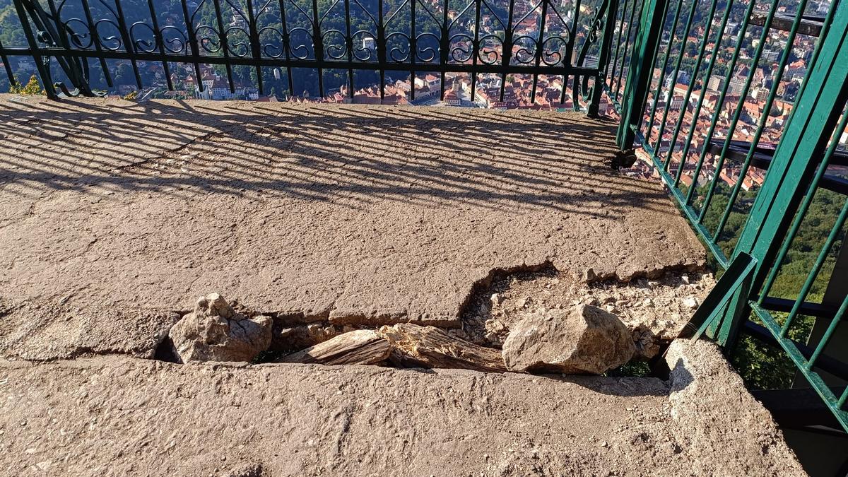 În cursul acestei săptămâni, când este minivacanța de Sfânta Maria, în Brașov sunt așteptați numeroși turiști. Mulți dintre ei vor vedea inscripția „Brașov” de pe Tâmpa și nu vor rezista tentației de a urca până acolo. Numai că ajunși la platforma de lângă litere, ei vor trebui să fie extrem de atenți. Aceasta este degradată, iar una dintre găurile apărute în urmă cu aproximativ un an s-a extins. Reprezentanții Primăriei Brașov cunosc problema de mult timp, însă mare lucru nu au făcut.