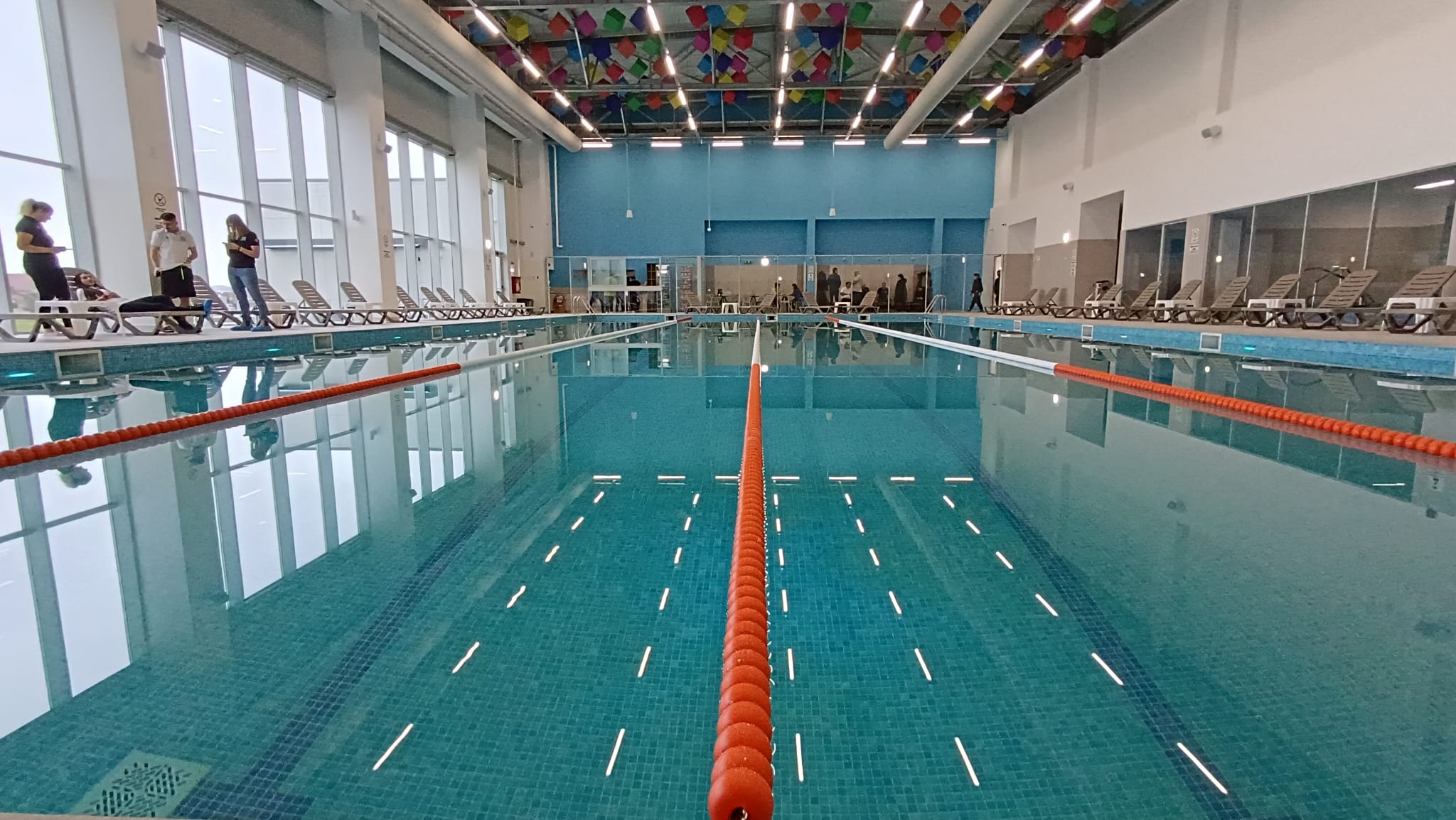 Primii vizitatori au venit înainte de prânz și s-au arătat încântați de noul bazin semi-olimpic de la Ghimbav, dar și de lumina naturală care intră prin geamurile înalte și priveliștea care se vede din bazin în afara clădirii.