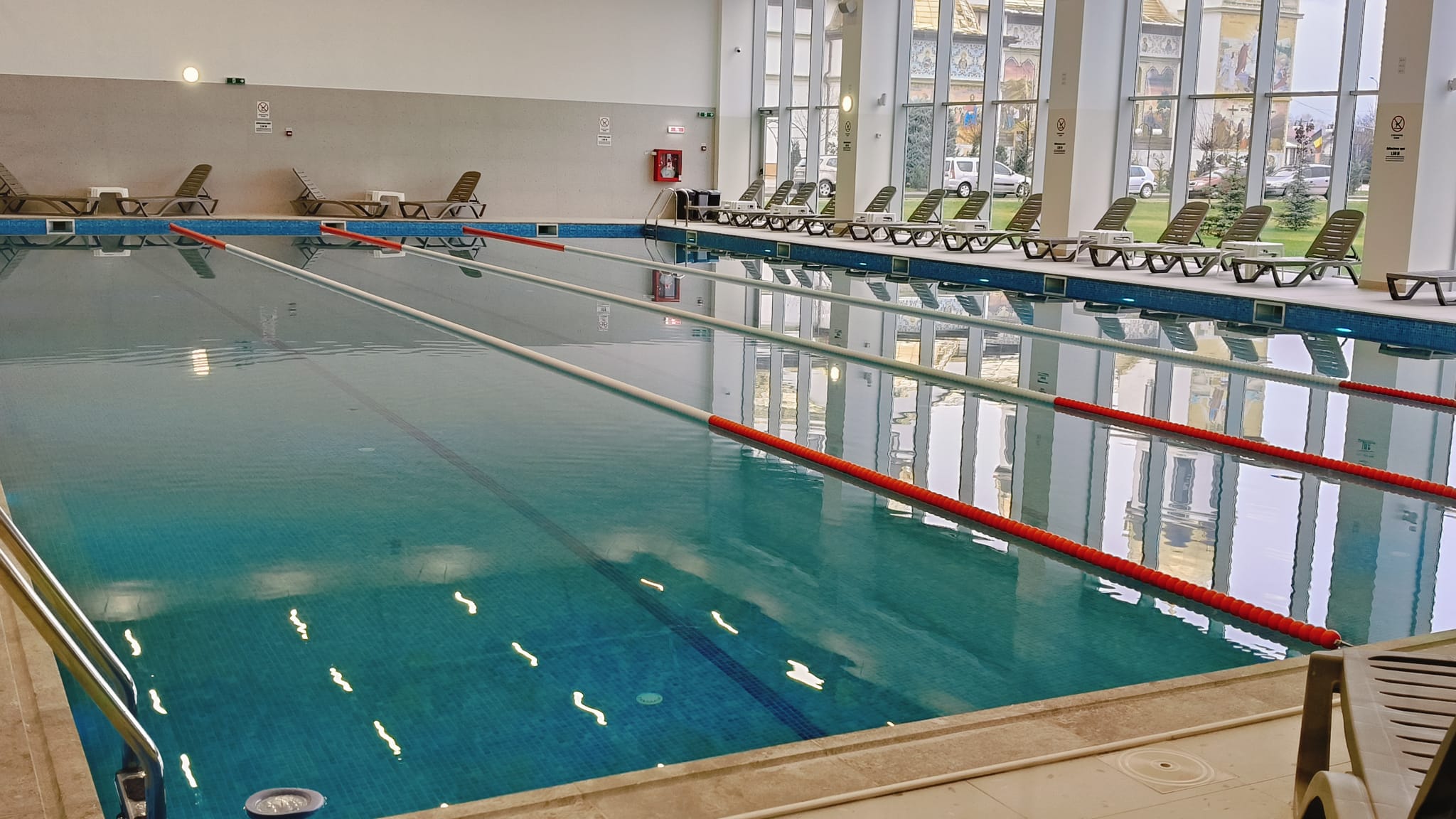 Circuitul cu apă caldă și rece (foto dreapta jos) și sălile pentru saună sunt gândite pentru recuperarea sportivilor dar și pentru terapia seniorilor, spune primarul. Însă oricine este binevenit. Complexul dispune şi de două bai jacuzzi.