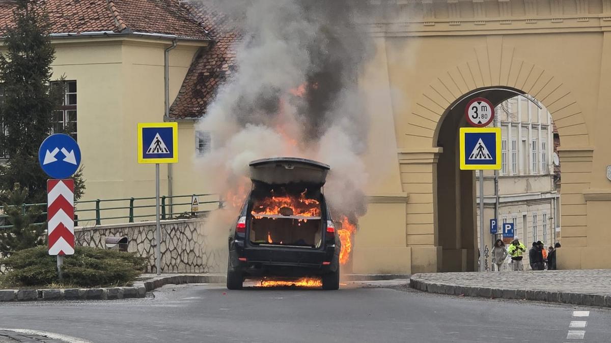 „Am fost anunțați de izbucnirea unui incendiu la un autoturism în Centrul Istoric al Brașovului, zona Poarta Șchei. La fața locului au intervenit de urgență două autospeciale de stingere, echipajele acționând pentru lichidarea incendiului și prevenirea extinderii acestuia. Cele două persoane aflate în autoturism au reușit să se evacueze la timp, nefiind înregistrate victime. Din păcate, autovehiculul a ars în proporție de 90%. Cauza izbucnirii incendiului este în curs de stabilire”, a informat purtătorul de cuvânt al ISU Brașov, .lt. col. Ciprian Sfreja.