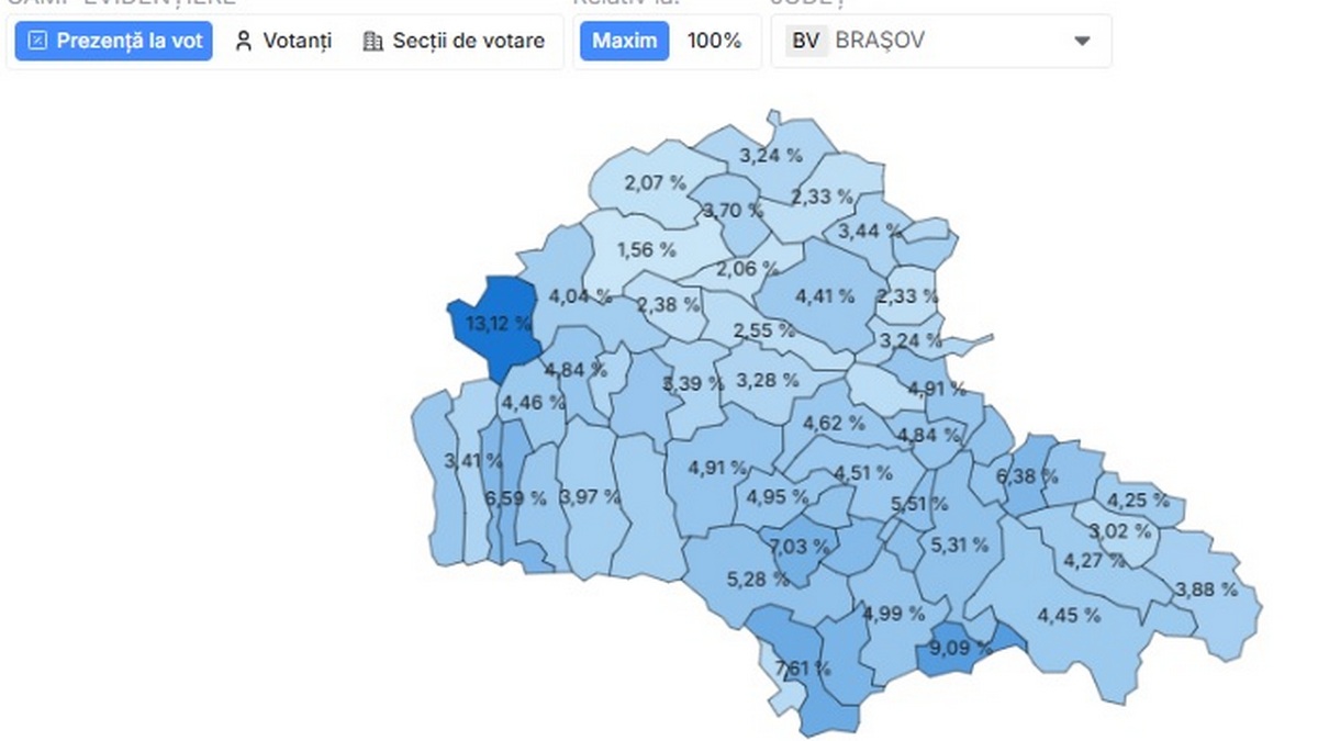 În județul Brașov, la ora 9.00, cea mai mare prezență la urne era în comuna Cincu – 13,12%, însă procentul este influențat de votul pe listele suplimentare. Mai exact, în comună, unde este și o bază militară NATO, unde sunt dislocați și soldați români, au votat pe listele permanente 43 de persoane, iar pe cele suplimentare – 143 de persoane. În comuna Cincu, pe listele electorale permanente (cele care au domiciliul în comună) sunt înscrise 1.532 de persoane.