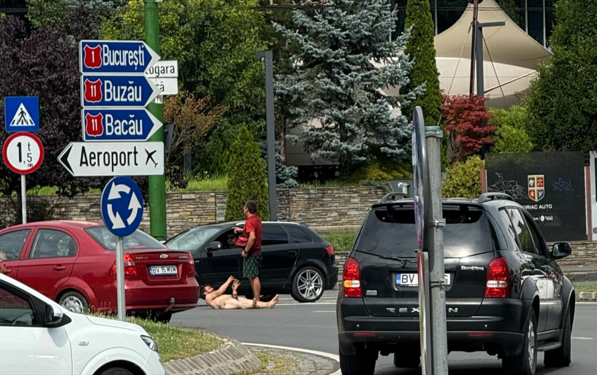 Astfel, în plină zi, un bărbat complet dezbrăcat și-a făcut apariția pe stradă, printre mașini. S-a plimbat liniștit pe Bulevardul Victoriei, apoi a venit în sensul giratoriu de la Gară. Într-un final, problema a fost rezolvată de jandarmerie, care a venit pentru a-l ridicat pe bărbatul cu comportament excentric.