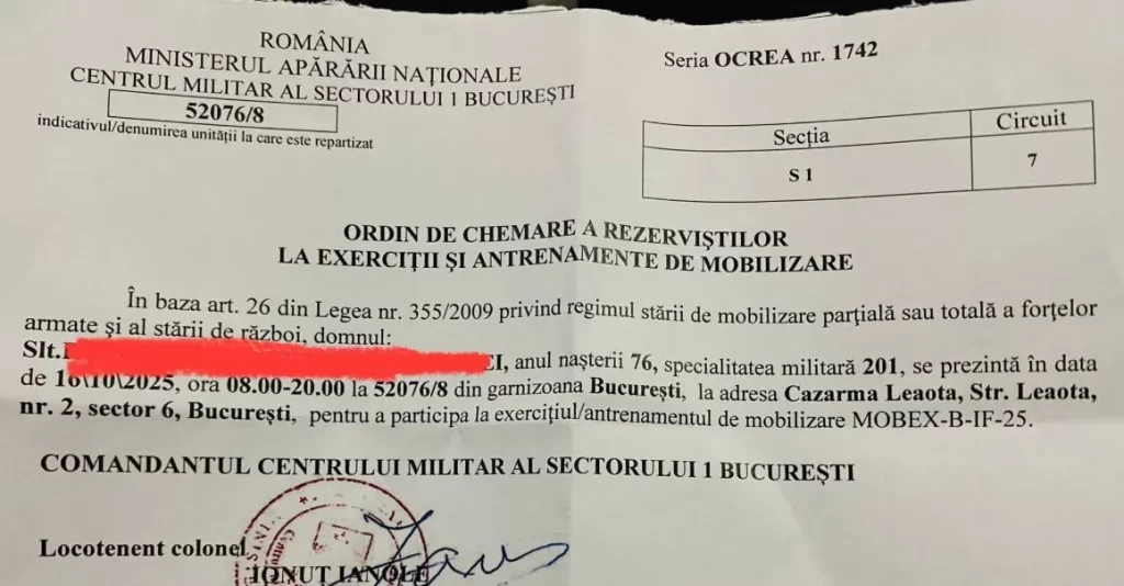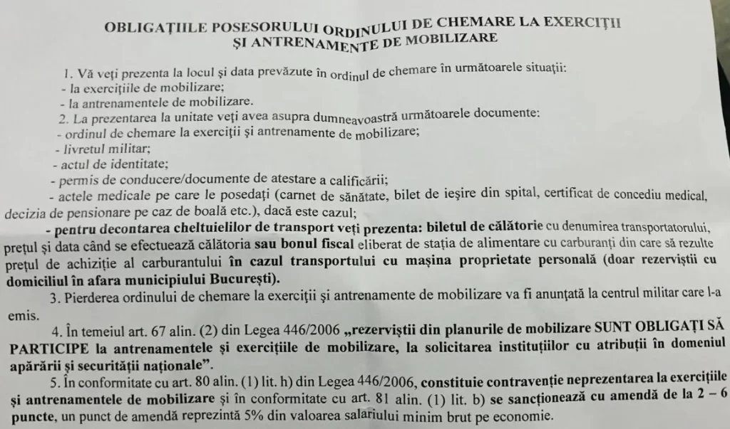 Sursa foto: FB Andrei Roșu – Ordin de chemare a rezerviștilor