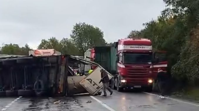 Centrul INFOTRAFIC din Inspectoratul General al Poliției Române a anunțat luni că un ansamblu rutier (TIR) s-a răsturnat parțial pe carosabil, pe DN 1 Brașov – Făgăraș, în afara localității Codlea. Conform sursei amintite, este blocat un sens, iar circulația se desfășoară alternativ, dirijat.