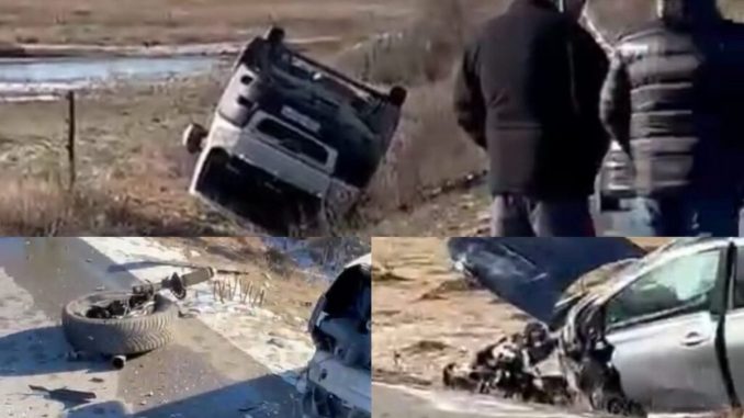 În timpul manevrei, autoturismul ar fi acroșat autoutilitara, după care a intrat în coliziune frontală cu un alt autoturism care circula regulamentar din sens opus, la volanul căruia se afla un bărbat de 35 de ani, tot din Arpașu.