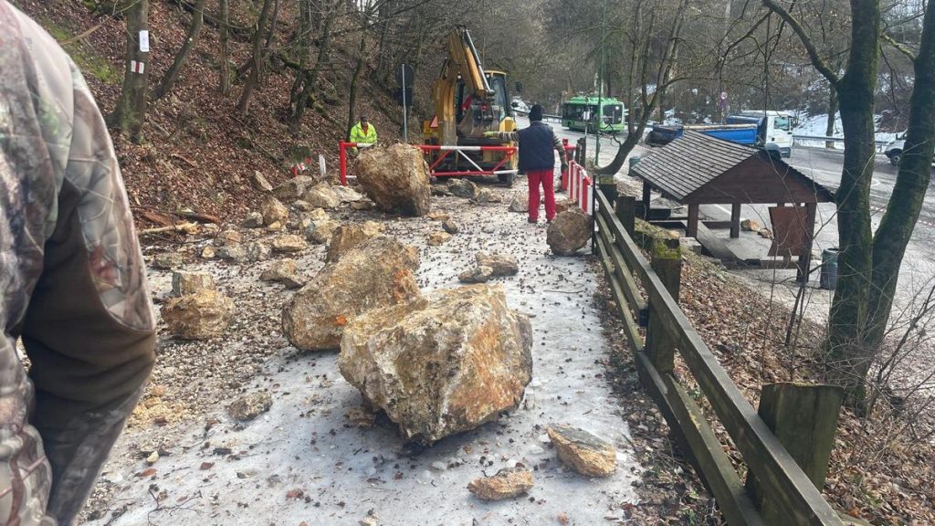 „În paralel, pe versant, sparg stâncile care s-au oprit în arbori, pentru a elimina pericolul ca acestea să ajungă în drumul vechi. Angajații Serviciului Salvamont cercetează, în rapel, stânca din care s-au prăbușit aceste bucăți, pentru a evalua riscul și a lua măsurile care se impun”, a anunțat Primăria Brașov.