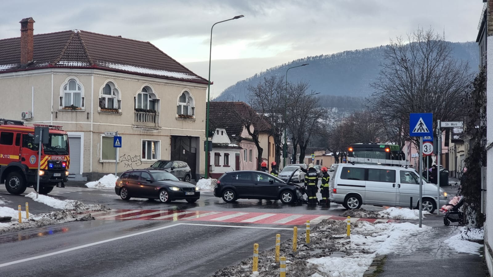 Un autobuz al RATBV a fost implicat astăzi într-un accident în zona centrală a Brașovului. Evenimentul rutier s-a produs la intersecția străzii Avram Iancu cu strada Morii, aproape de ora 16.00.