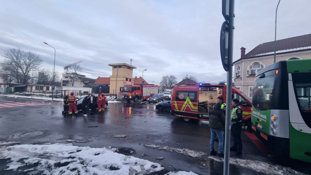 Potrivit martorilor, accidentul ar fi fost provocat de șoferul unui autoturism, care nu a acordat prioritate și a intrat în coliziune cu mijlocul de transport în comun.