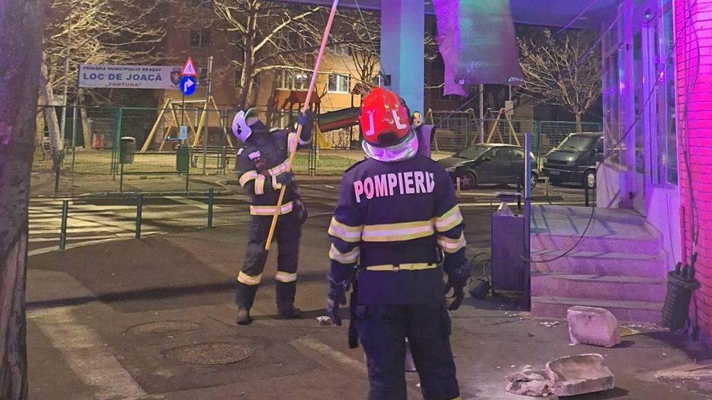 Vântul puternic din noaptea de vineri spre sâmbătă a provocat pagube în municipiul Brașov. Astfel, potrivit Inspectoratului pentru Situații de Urgență Brașov, în urma vântului puternic, un stâlp s-a prăbuşit pe Calea Feldioarei, blocând un sens de mers. Circulația rutieră a fost oprită temporar, până la remedierea problemei