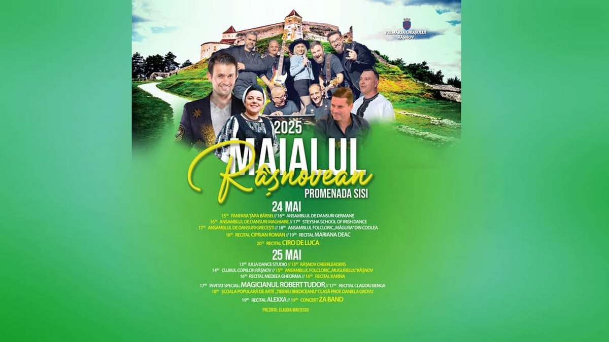 Primăria Orașului Râșnov are plăcerea de a anunța organizarea tradiționalului eveniment „Maialul Râșnovean”, care va avea loc în perioada 24-25 mai, în Promenada Sissi din Orașul...