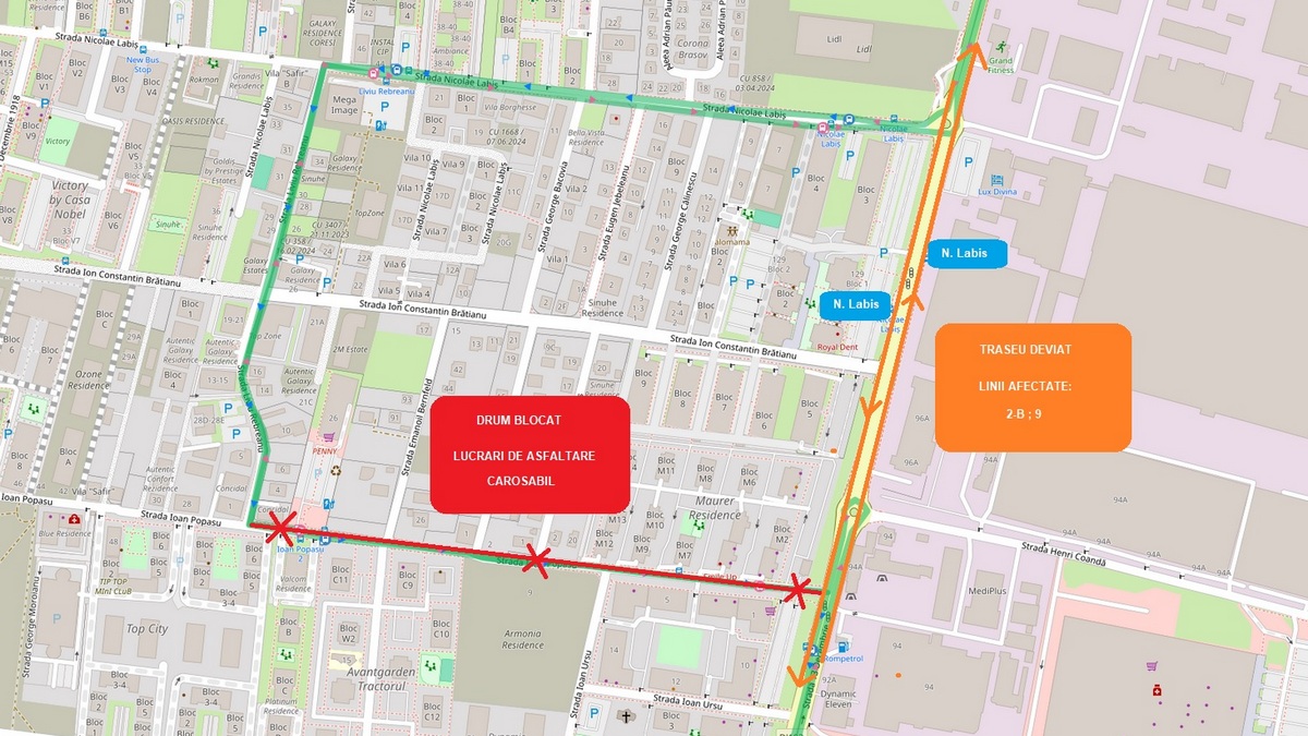 Astăzi începând cu orele 11.00, autobuzele de pe liniile urbane 2B și 9, pe ambele sensuri de deplasare, nu vor mai intra prin cartierul Tractorul. Modificarea...