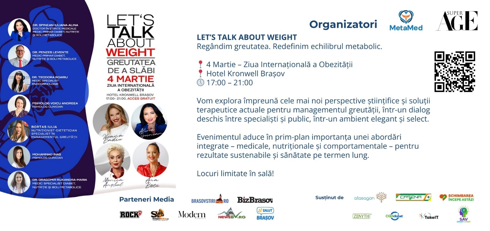 Participanții vor pleca de la eveniment cu claritate, informații utile și sentimentul că nu sunt singuri în această experiență. Accesul la „LET’S TALK ABOUT WEIGHT – Greutatea de a slăbi” este gratuit, însă locurile sunt limitate, ceea ce va transforma întâlnirea într-o experiență aproape personală.