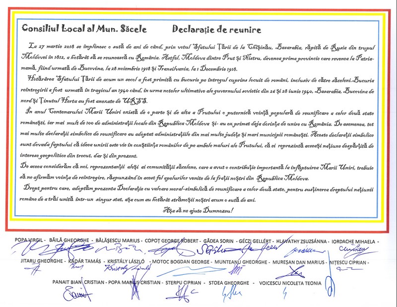 Declarația aprobată simbolic în ședința de miercuri și votată semnată de toți consilierii locali va fi înrămată și afișată în sala de ședințe a Consiliului Local Braşov.