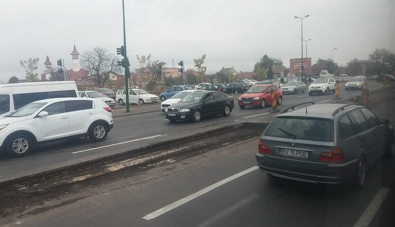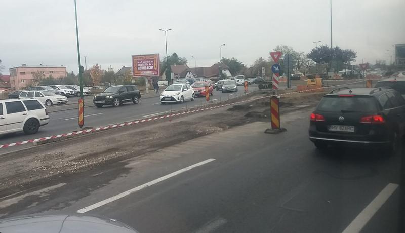 FOTO. Trafic rutier dat peste cap în Bartlomeu. Se lucrează la „insula” de pe Calea Făgărașului