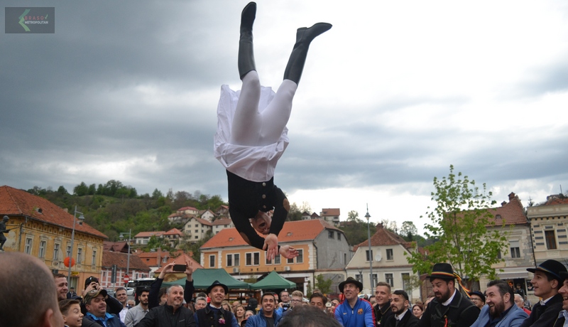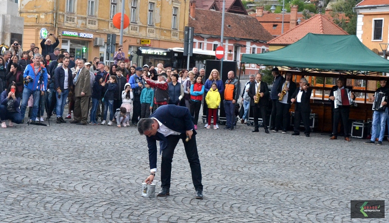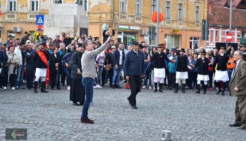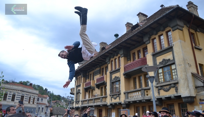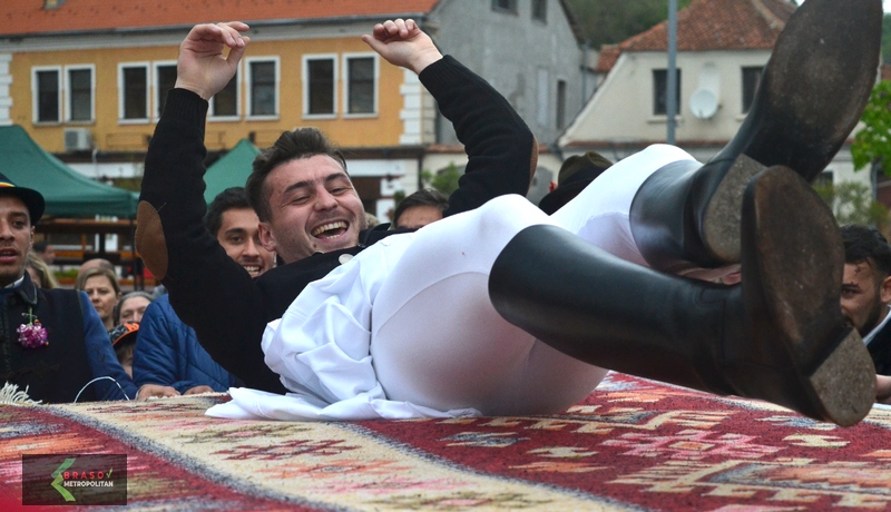 Aproximativ 100 de brașoveni au asistat vineri, în Piața Prundului, la „Aruncatul în țol”, unul dintre vechile obiceiuri ale Junilor Tineri din Brașov din Săptămâna Luminată.