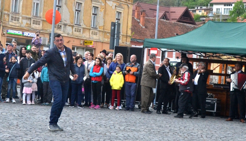 FOTO/VIDEO. Junii Tineri au făcut spectacol în Piața Unirii. Obiceiul „Aruncatului în țol” a atras numeroși brașoveni și turiști