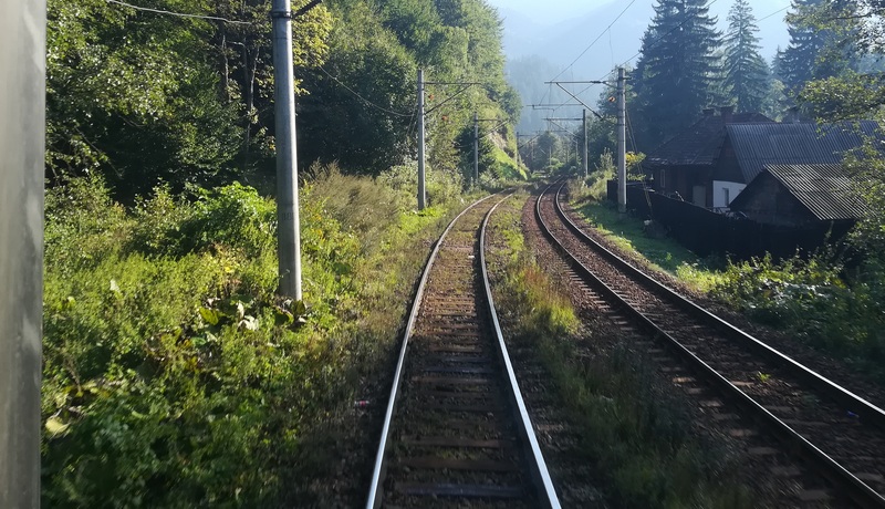 De la Brașov la Bușteni, călătoria cu trenul durează o oră. Ce e drept, vara, într-o zi de sâmbătă dimineața locul în tren nu e garantat. Dar e bun și un bilet fără loc. „Uite că oamenii încep să meargă cu trenul”, mă gândesc eu. Pe peron se elucidează enigma. Trenul are exact două vagoane. În tren aflu și cauza. „Nu mai sunt vagoane. Pentru a forma garniturile pentru Constanța au luat câte un vagon de la alte trenuri”, îmi explică „nașul”. Asta e. Împart spațiul pentru biciclete cu alți călători. Măcar trenul a pornit vijelios. După câteva minute trece de 87 km/h. Dar revine repede la mersul molcom. După Dârse, mai cu 50 km/h, mai cu 40 km/h, dar ajunge la timp în Bușteni.