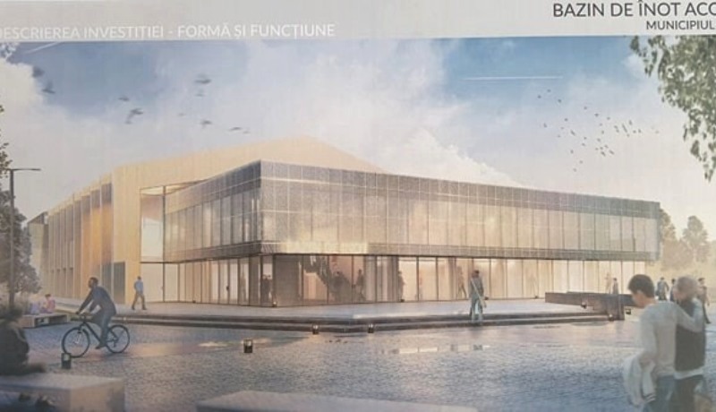 Apa bazinului interior va fi încălzită și recirculată. Temperatura apei din bazin va fi de 26 grade, iar cea a aerului de 28 de grade C. - Bazin mic de înot– cu dimensiune de de 7×15 m, care să poată fi utilizat pentru antrenament și pentru copii cu vârste mai mici de 5 ani. Bazinul va fi proiectat având în vedere prescripţiile şi standardele în vigoare, referitoare la aceste construcţii. Adâncimea apei din bazin va fi în variabilă de la 0,90 la 1,10 m, cu respectarea cotei luciului de apa față de jgheaburile de colectare pentru deversarea supraplinului în rezervorul tampon de compensare, conform normativelor. Se va avea în vedere și amenajarea spatiilor libere – căi de acces din jurul bazinului. Apa bazinului interior va fi încălzită și recirculată în sitem de hidroliză salină. Temperatura apei din bazin va fi de 26 grade C, iar cea a aerului de 28 de grade C.