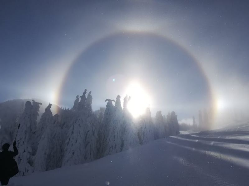 Deocamdată, în partea superioară a masivului, zăpada este abia atinsă, ceea ce oferă o imagine spectaculoasă celor care au putut urca până acolo.