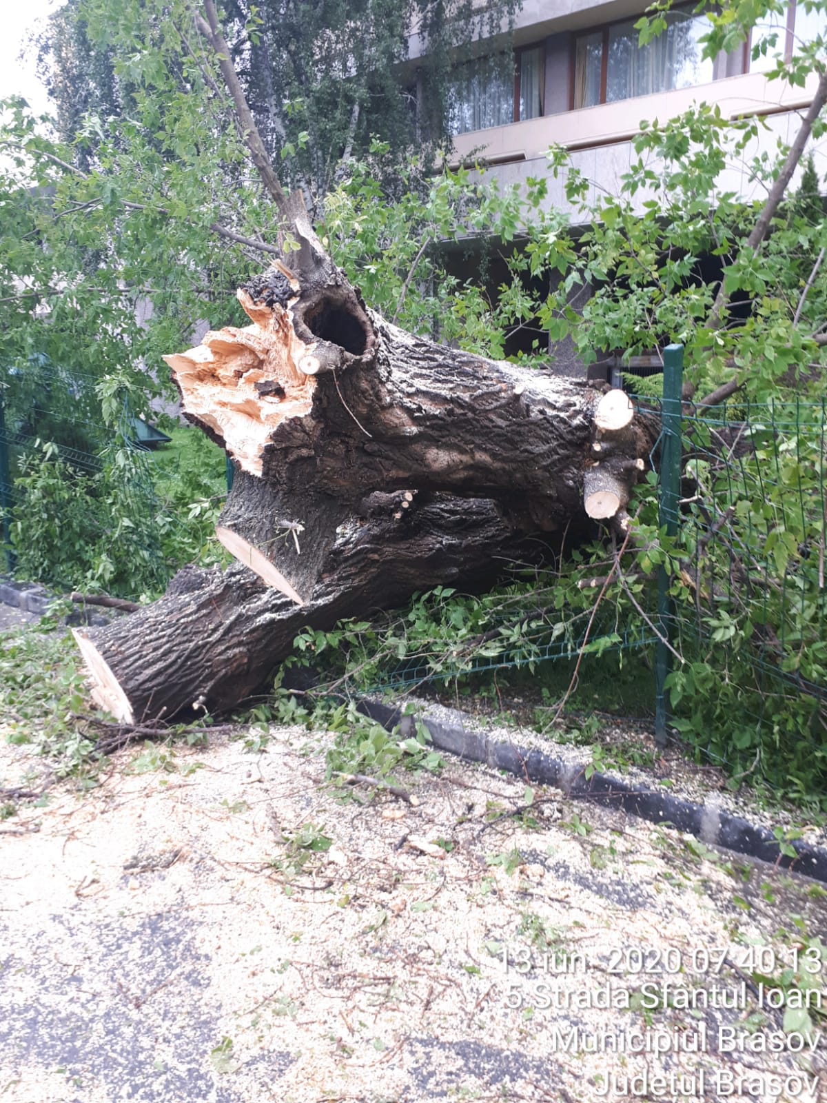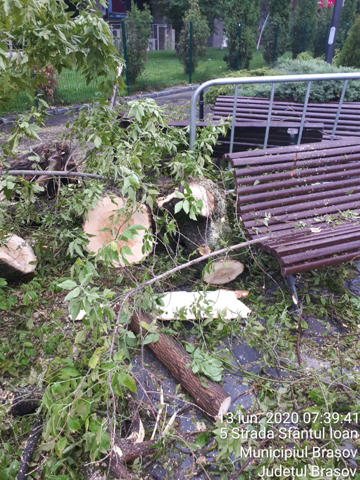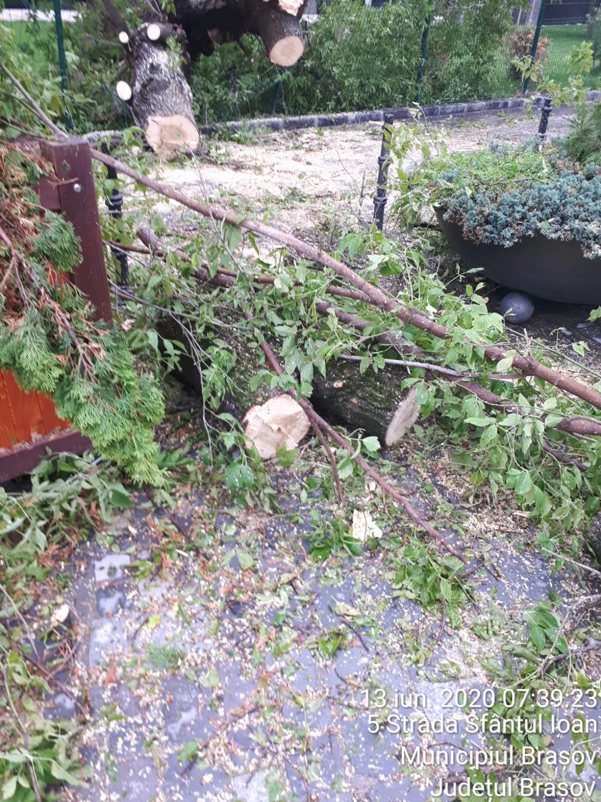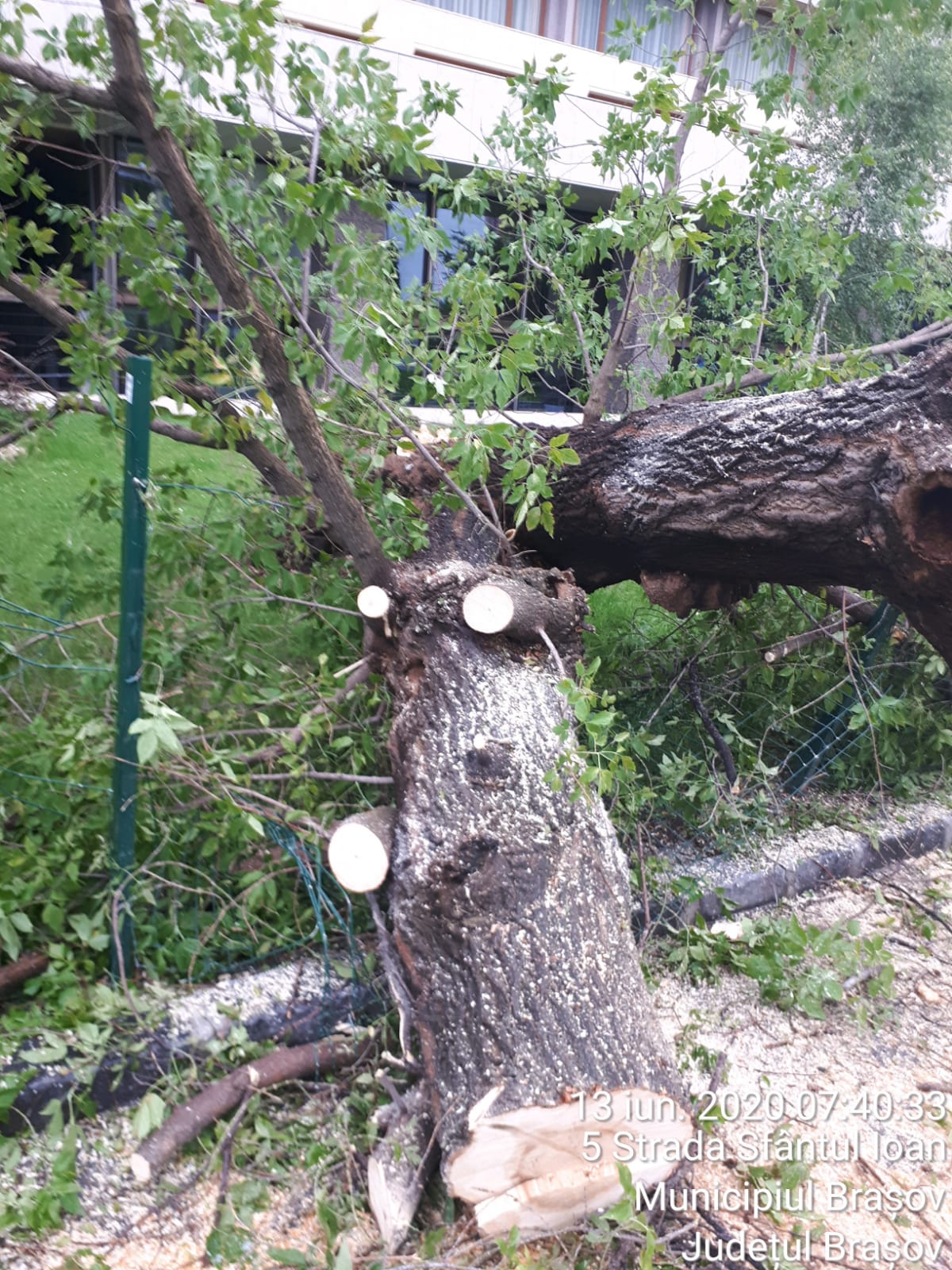 Reamintim că în ultima perioadă au avut loc mai multe incidente cauzate de prăbușirea unor arbori sau crengi în timpul furtunilor. În urmă cu aproximativ două săptămâni, un autoturism a fost avariat în trafic de un corcoduș care s-a prăbușit pe stradă, în zona magazinului Universal. În urmă cu o săptămână, pe strada Sfântul Ioan (în spatele hotelului Aro Palace), un frasin a fost rupt de vântul puternic.