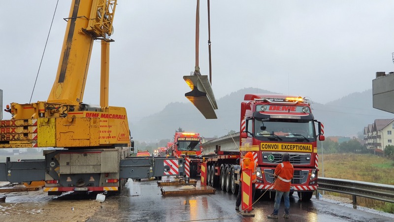 În total vor fi montate 22 de grinzi. Lucrările au început ieri, când firma care se ocupă de acest proiect a montat 12 dintre ele (foto). Astăzi va fi finalizată întreaga lucrare, prin montarea celorlalte 10 grinzi, anunţă DRDP Braşov.