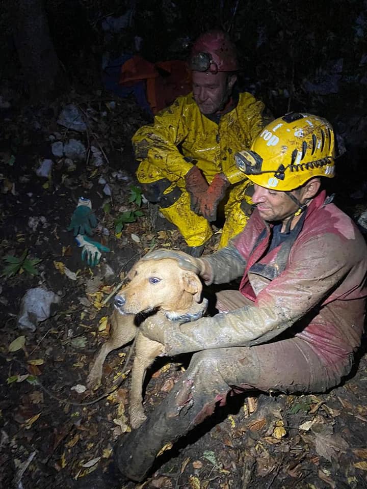 Salvamont Brașov și Clubul de Speologie Avenul au făcut echipă pentru a salva un cățel care „s-a crezut pisica cu nouă vieți”