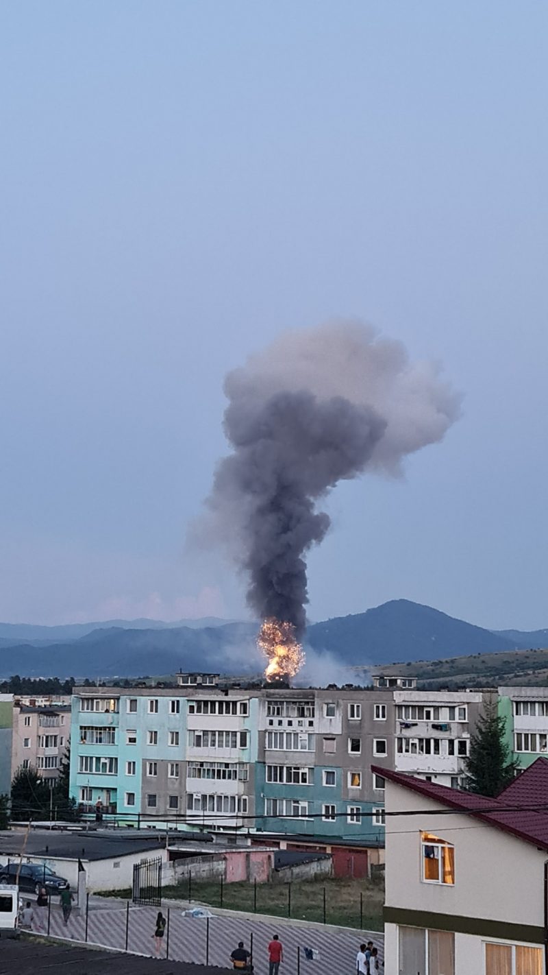 Incendiul a pornit la un container în care erau depozitate mai multe materiale sanitare. Acesta se manifestă cu degajare mare de fum care poate fi văzut de la câțiva kilometri distanță.