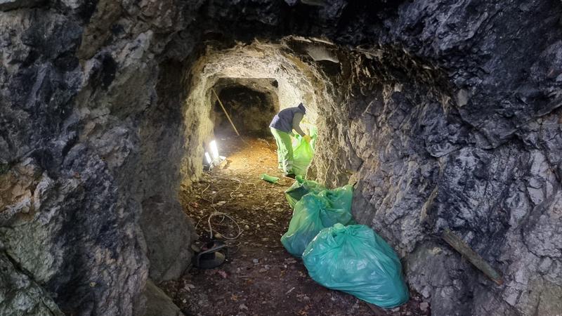 FOTO&VIDEO. Curăţenia de toamnă în grotele de sub Tâmpa: 300 de saci de gunoi adunaţi într-o acţiune comună a Comprest, Salvamont şi SVSU Braşov