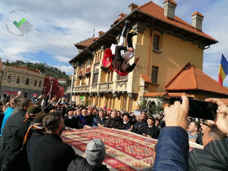FOTO VIDEO. Părintele Vasile Olteanu, de la Prima Şcoală Românească, premieră la „aruncatul în ţol” al Junilor Braşovului: „Am scris despre asta în cinci ediţii de carte”