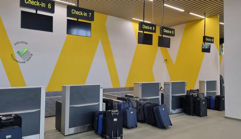 În schimb, vizita s-a suprapus cu perioada de testare a sistemului check-in, iar pentru a vedea dacă echipamentele funcționează au fost aduse numeroase bagaje, care așteptau să fie „verificate”.