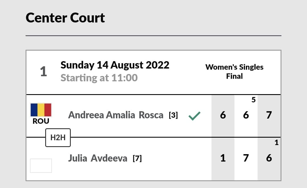 Andreea Roşca, care a profitat de cele 9 duble greşeli ale rusoaicei, şi-a luat revanşa după ce Avdeeva s-a impus anul trecut, în mai, în semifinalele unui turneu ITF (W15) de la Antalya, cu 7-6 (4), 5-7, 6-0.