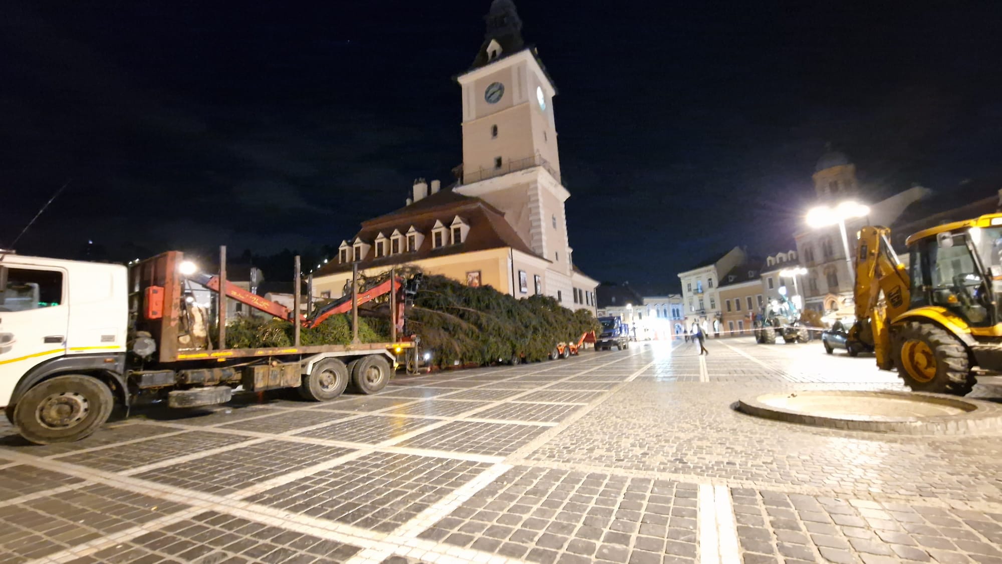 Montarea bradului din Piața Sfatului, o misiune deloc ușoară