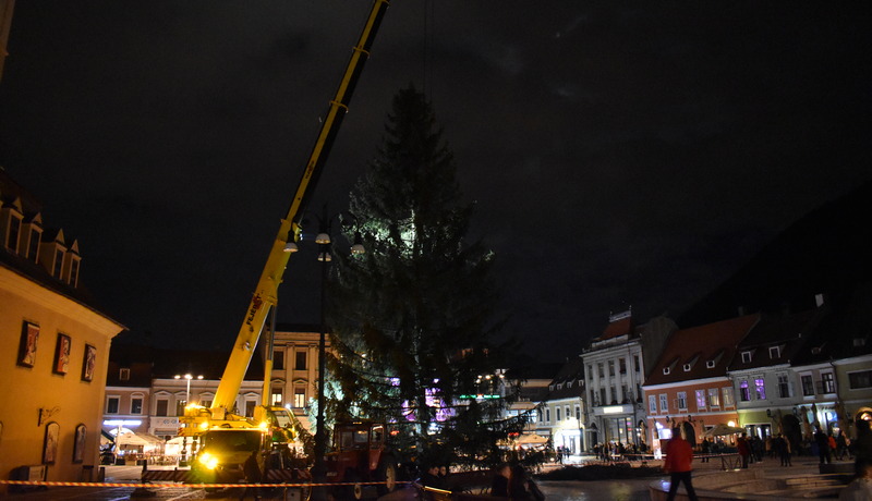 „Acesta este bradul care a fost ani la rând, vecin cu cel care a împodobit Brașovul anul trecut. Are o înălțime totală de 21 de metri, plus încă 3 metri în pământ și o greutate de 6,5 tone”, a spus directorul Regiei Publice Locale a Pădurilor Kronstadt, Dan Olteanu, în timp ce urmărea în Piața Sfatului lucrările de montare.
