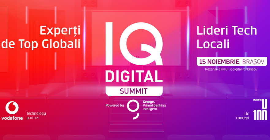 Banca Comercială Română împreună cu Vodafone, în calitate de partener de tehnologie, și cu echipa Upgrade 100 organizează un nou eveniment IQ DIGITAL Summit, pe 15 noiembrie, la Brașov, în Sala Mare a Teatrului Sică Alexandrescu. IQ DIGITAL Summit este unul dintre cele mai mari evenimente de business și tehnologie care are loc în acest an la Brașov și reunește experți în strategie și scenarii de afaceri pentru viitor, lideri din digitalizare și o suită de experți și antreprenori locali. Accesul la eveniment este gratuit, în limita locurilor disponibile, pe baza înscrierii în secțiunea dedicată de pe pagina evenimentului Brașov IQ DIGITAL by U100 & George (https://iqdigital.ro/brasov/#bilete).