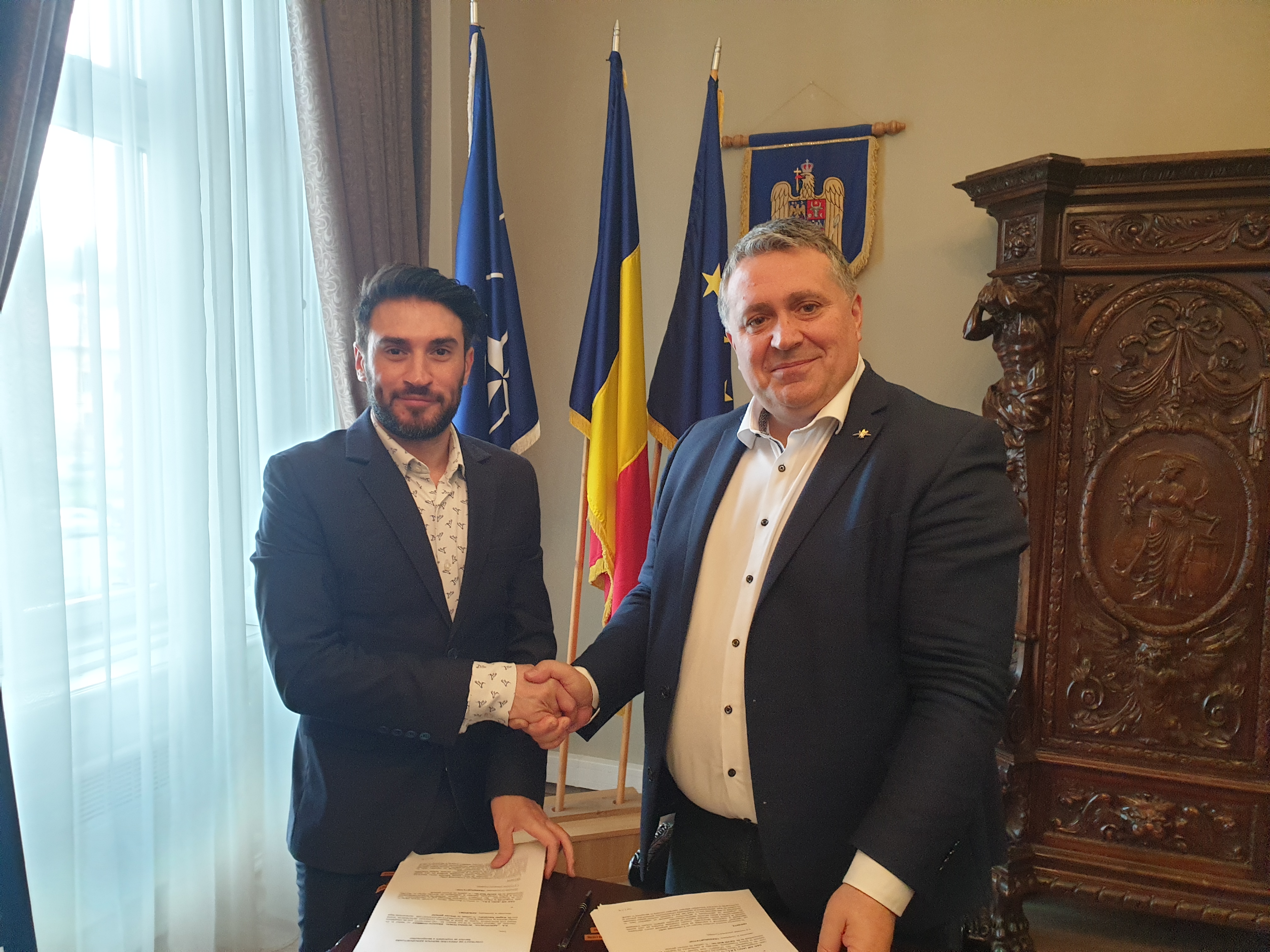 Regia Autonomă „Aeroportul International Braşov-Ghimbav” – în calitate de Aeroport, reprezentată de directorul general Alexandru Anghel, şi DAN AIR (AOC) SRL – în calitate de Transportator, prin directorul general Matt Ian David au semnat luni primul contract de prestări servicii aeroportuare – pentru exploatarea AIBG.