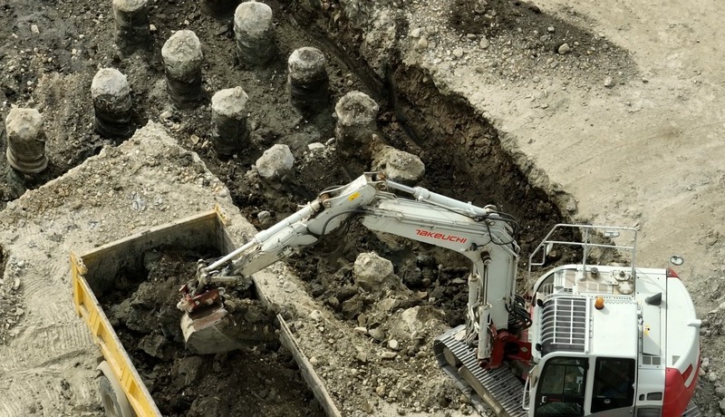 Conform reprezentanților firmei de construcții, până în acest moment s-au realizat lucrări de terasare, turnarea celor 1.915 de piloți forați cu diametre între 500 și 600 de mm și cu o lungime de până la 15 metri, la o adâncimea maximă de forare de 21,5 metri. Inițial, adâncimea de forare ar fi trebuit să fie de 11 metri, însă terenul, unde, cu mult timp în urmă era o mlaștină, era destul de slab pentru a susține o construcție masivă.